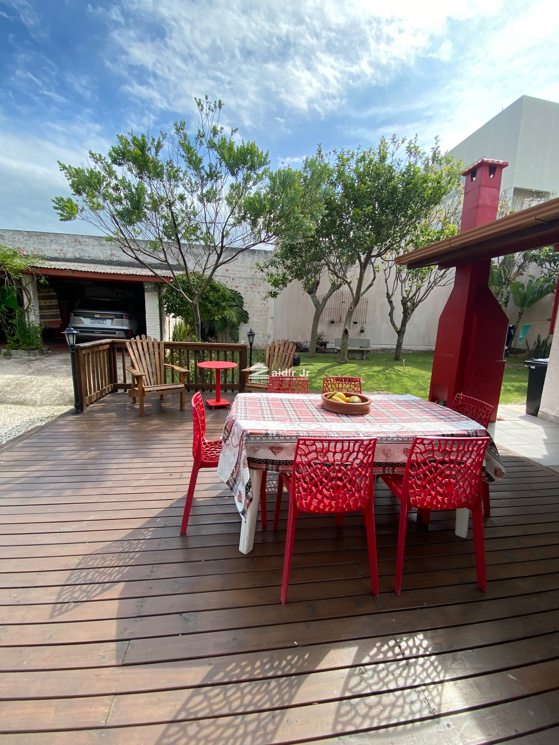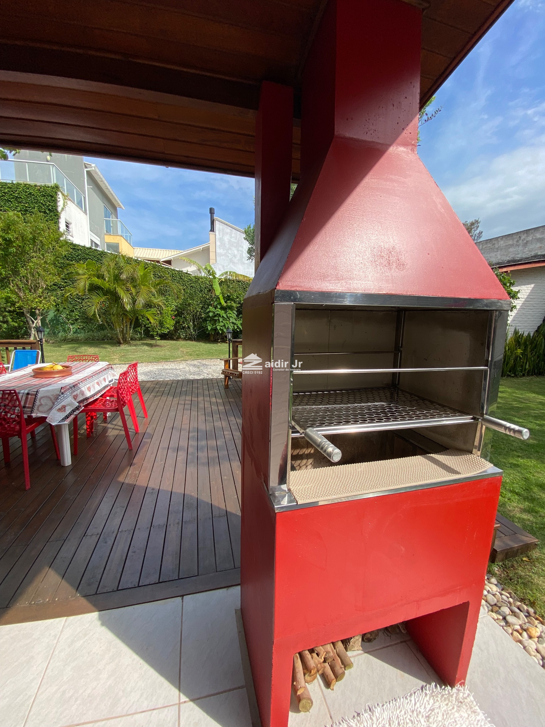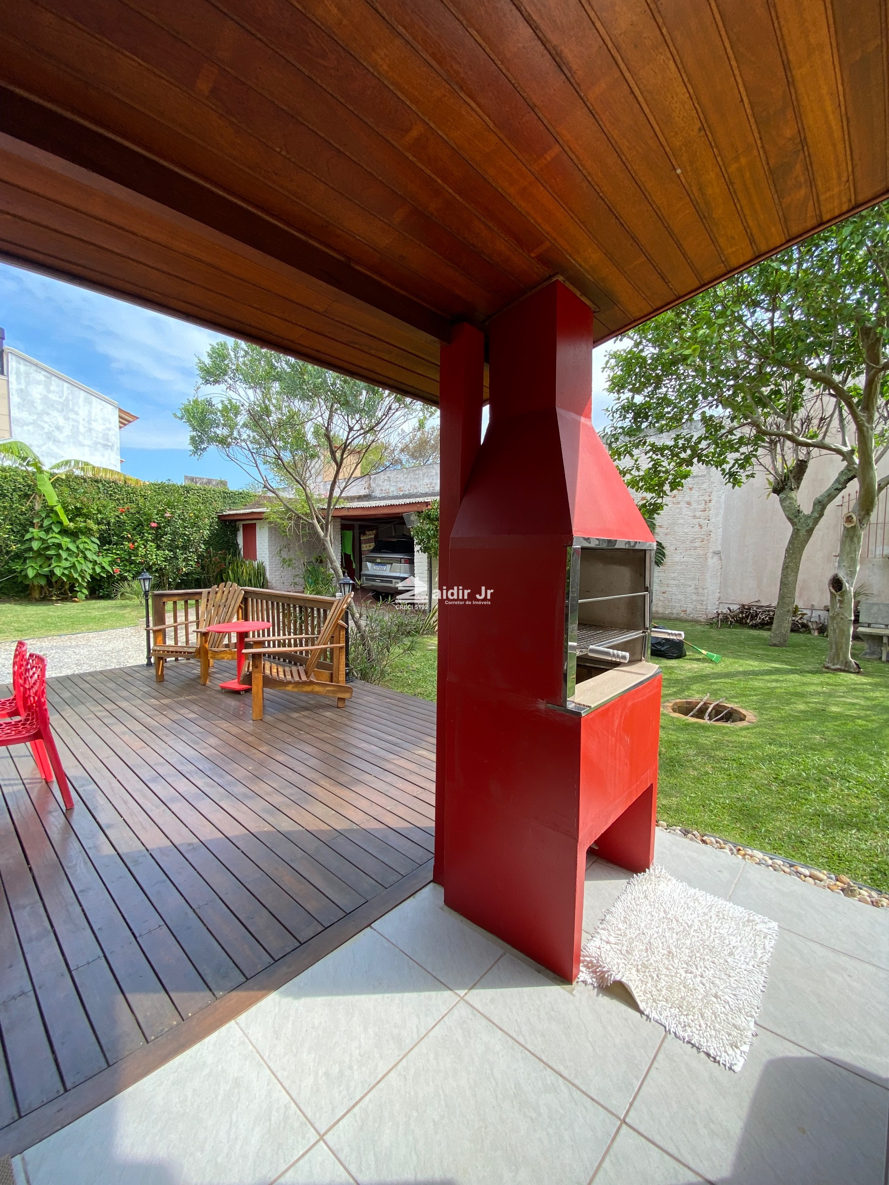 *Área externa com deck de madeira para suporte de churrasqueira