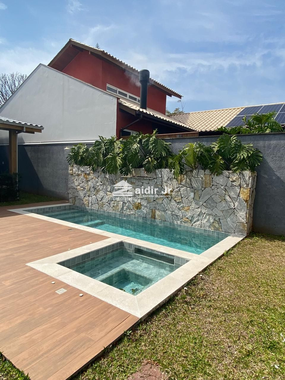 Diferenciais que encantam: Piscina com spa e cascata, sistema de filtragem automática e tratamento da água com sal lazer e saúde no mesmo espaço. Energia fotovoltaica, garantindo economia e sustentabilidade. Aquecimento a gás para o banho da suíte master e para a cozinha. Edícula completa, com churrasqueira, banheiro de apoio e depósito. Garagem coberta para 2 carros, equipada com armário externo. Depósito adicional sob a escada, otimizando a organização.